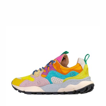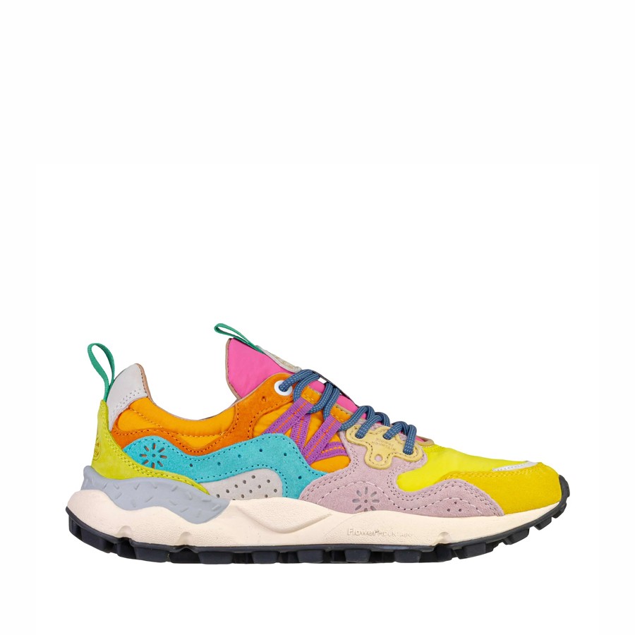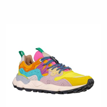 The Flower Mountain Yamano 3 women's sneakers combine outdoor spirit and urban style in an iconic and contemporary design. The upper is made of pink and yellow suede combined with breathable technical fabric in yellow and orange, for a dynamic yet refined look.
