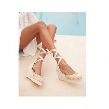 Esalta il tuo stile estivo con queste espadrillas naturali con zeppa. Dotati di una tomaia in rafia intrecciata traspirante ed eleganti lacci avvolgenti alla caviglia, combinano eleganza e comfort. Il tacco a zeppa ricoperto di iuta aggiunge altezza senza compromettere la stabilità, rendendoli perfetti sia per le uscite informali che per le occasioni serali. Combinali con abiti fluidi o indumenti sartoriali separati per un look chic e sofisticato adatto alla stagione estiva.