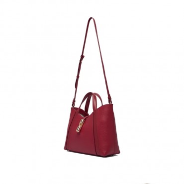 Borsa a mano Goccia S Ciliegia Furla, elegante e raffinata borsa in pelle liscia, con doppi manici e tracolla regolabile e removibile. Comparto con chiusura con fascetta esterna, interno foderato e con taschino.