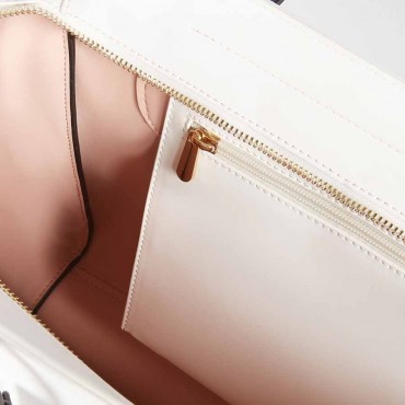 Modello borsa shopper verticale a 2 manici con tracolla removibile in eco pelle tinta unita. Chiusa con zip. La tracolla regolabile removibile per una trasportabilità a tracolla. Logosul fronte in metallo. Interno in tessuto con colore a contrasto. Con charms logo metallico.