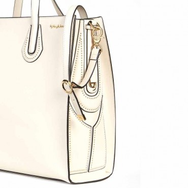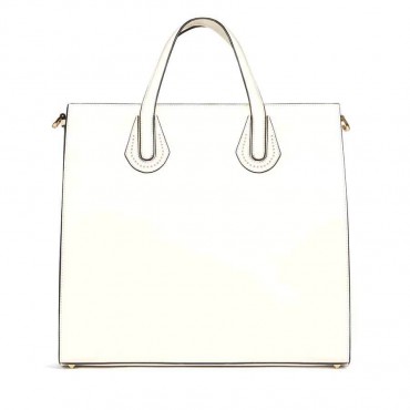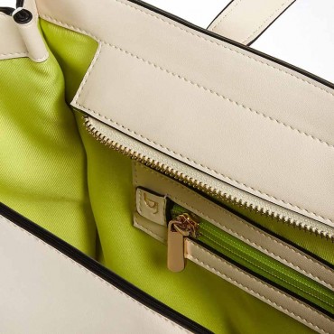 Modello borsa shopper verticale media a 2 manici con tracolla removibile in eco pelle tinta unita. Decorazione con micro borchie in oro nei soffietti ai lati della borsa. Chiusa con zip. La tracolla regolabile removibile per una trasportabilità a tracolla. Logo sul fronte in metallo. Interno in tessuto con colore a contrasto. Con charms logo metallico.