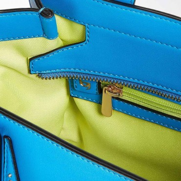 Modello borsa a mano tote media 2 manici con tracolla removibile in eco pelle tinta unita. Chiusa con zip. Decorazione con micro borchie nei soffietti e sovrapposizione materiali. La tracolla regolabile removibile per una trasportabilità a tracolla. Logo sul fronte in metallo. Interno in tessuto con colore a contrasto. Con charms logo metallico.