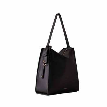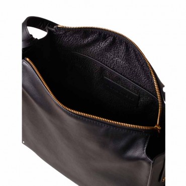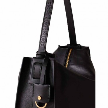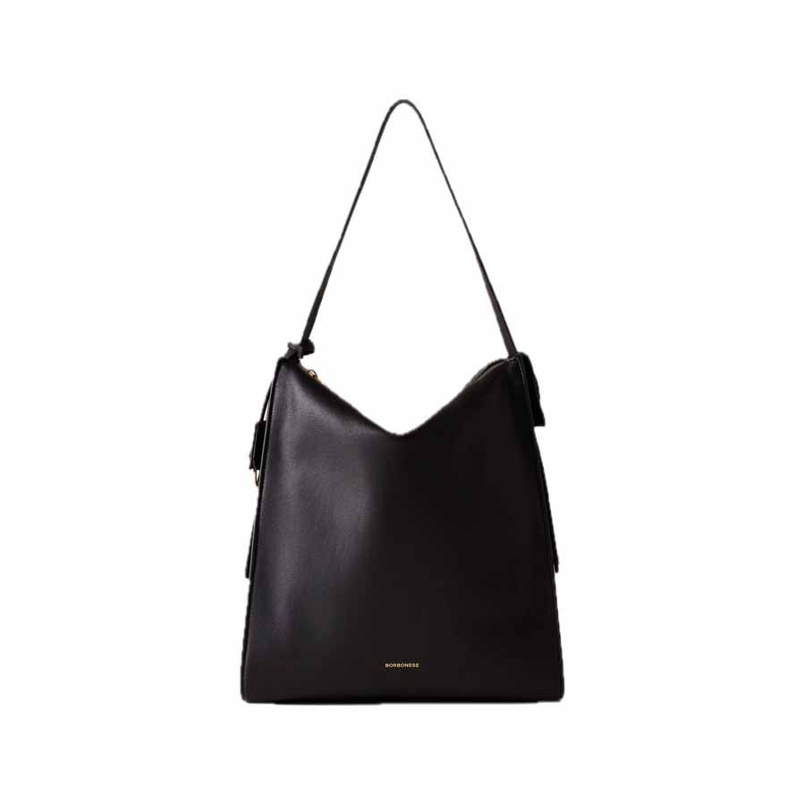 Modello borsa a spalla pelle nero. Déjeuner è una linea daily caratterizzata da forme semplici, ma con dettagli ispirati al DNA della tradizione Borbonese. Pelle di vitello bottalato Dettagli di pelle di vitello Chiusura regolata con zip Impugnatura di pelle con logo impresso a caldo Charm di pelle Fodera di tessuto jacquard riciclato Interno con tasca aperta Metallerie Oro