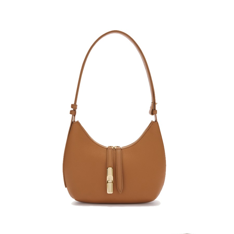 Furla Goccia è la shoulder bag dalle linee morbide e sinuose. In un gioco di contrasti materici tra pelle martellata e dettagli in pelle liscia, si caretterizza per la forma stondata e una silhouette compatta ma spaziosa. La chiusura con doppio cursore a zip è impreziosita dal particolare hardware cilidrinco in finitura lucida con logo Arco su uno dei due puller in pelle. - Tasca interna aperta a parete - Tasca interna con chiusura a zip - Manico in pelle liscia regolabile