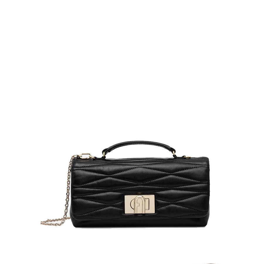 Versione compatta e super piccina per la borsa Furla 1927. Realizzata in pregiata pelle nappa matlassè è dotata di un manico superiore e di una tracollina sottile rimovibile a catena che consentono di portare il modello con versatilità. - Tre scomparti interni a parete per carte di credito