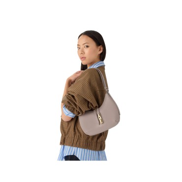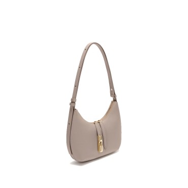 Furla Goccia è la shoulder bag dalle linee morbide e sinuose. In un gioco di contrasti materici tra pelle martellata e dettagli in pelle liscia, si caretterizza per la forma stondata e una silhouette compatta ma spaziosa. La chiusura con doppio cursore a zip è impreziosita dal particolare hardware cilidrinco in finitura lucida con logo Arco su uno dei due puller in pelle. - Tasca interna aperta a parete - Tasca interna con chiusura a zip - Manico in pelle liscia regolabile