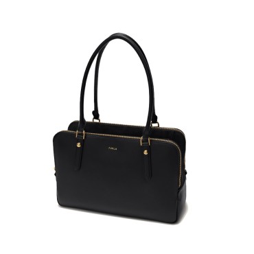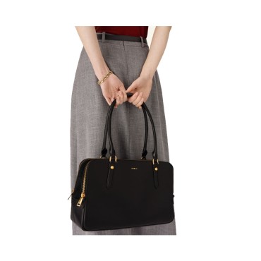 Linee squadrate dal design contemporaneo per il bauletto Furla Giulia. Il modello realizzato in pregiata pelle stampata combinata all'inserto scamosciato lungo le doppie chiusure con zip, presenta un interno ampio e spazioso perfetto per il lavoro. I manici permettono di indossare la borsa a spalla o in versione top handle. - Due tasche interne aperte a parete - Tasca interna con chiusura a zip - Ideale per laptop e documenti - Logo Furla punzonato sul davanti