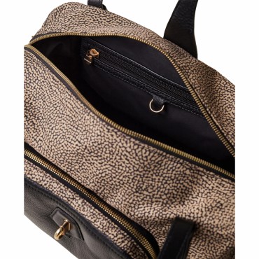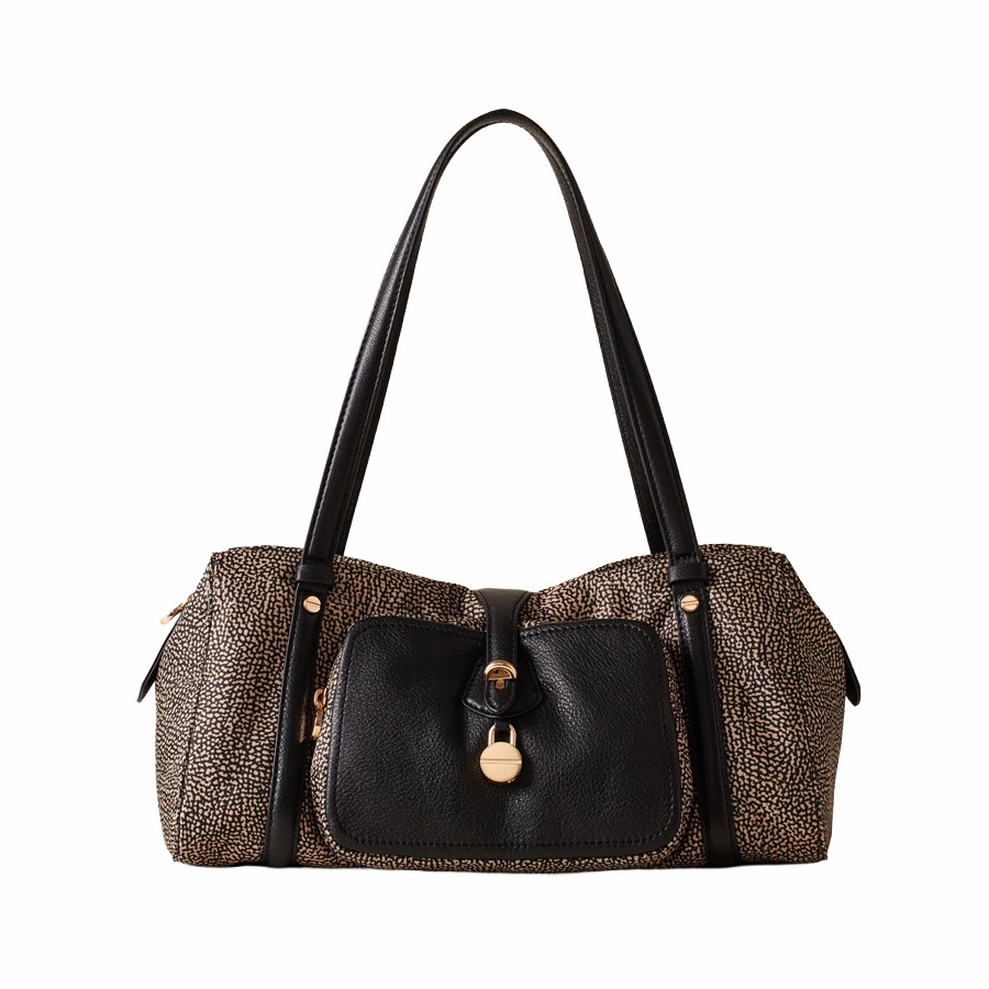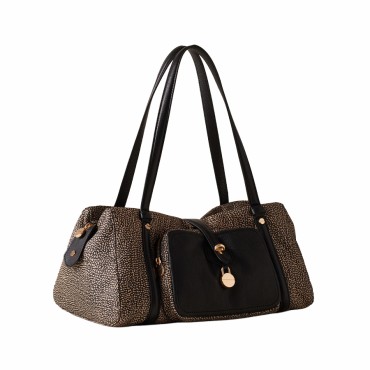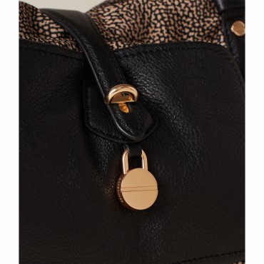 Borbonese bauletto medium a spalla Poche tessuto Opnaturale e Pelle nero