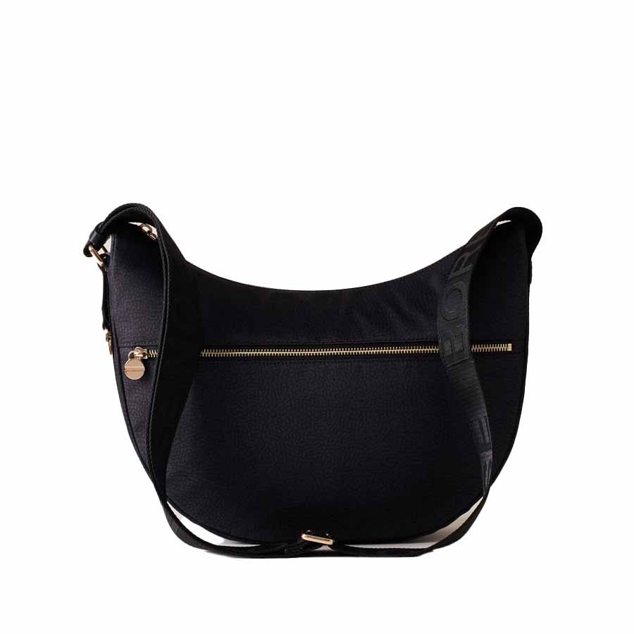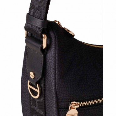 Borbonese borsa Luna bag middle Hobo tessuto Op dark black