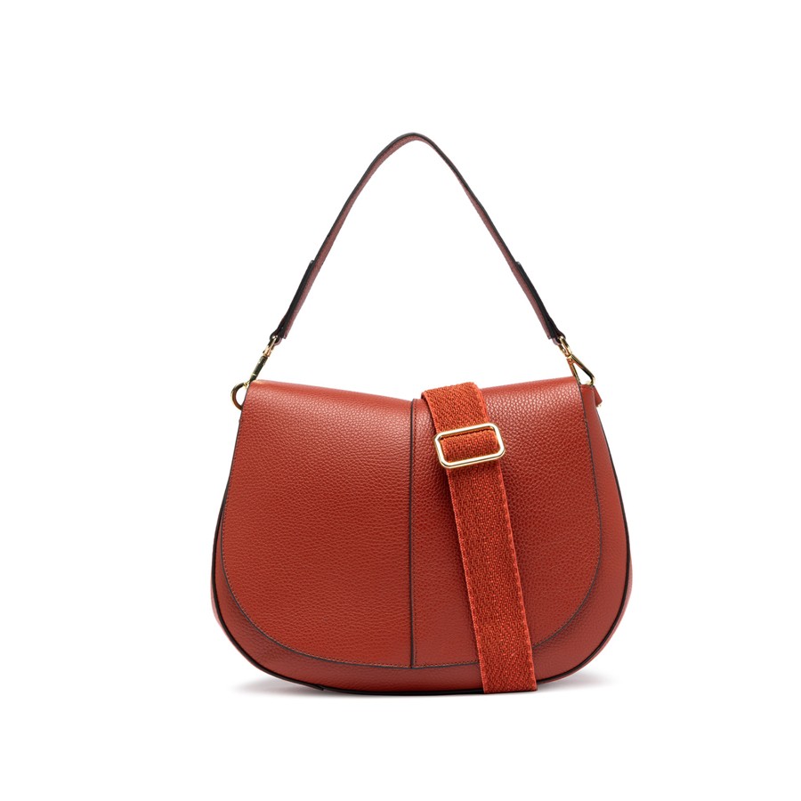 L'iconica Helena Round di Gianni Chiarini Firenze, realizzata in pelle martellata, si distingue per il suo design strutturato e dall'appeal contemporaneo. Versatile e funzionale, è dotata di una tracolla per una doppia portabilità. Pratica e organizzata è caratterizzata da un doppio compartimento interno e da una tasca a scomparsa anche nella parte posteriore della borsa.