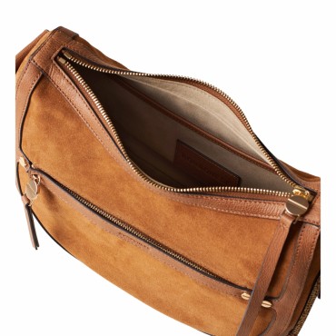 Borsa a Tracolla Borbonese La LUNA BORSA SMALL interpreta l’eleganza quotidiana con uno stile raffinato e contemporaneo. Realizzata in morbida pelle scamosciata color marrone radica, unisce materiali pregiati e dettagli iconici Borbonese, creando un accessorio versatile e ricco di personalità. I dettagli in vitello stampato effetto nabuk valorizzano il design con un tocco sofisticato, mentre la chiusura con zip in metallo e tirazip a vite garantisce praticità e sicurezza.