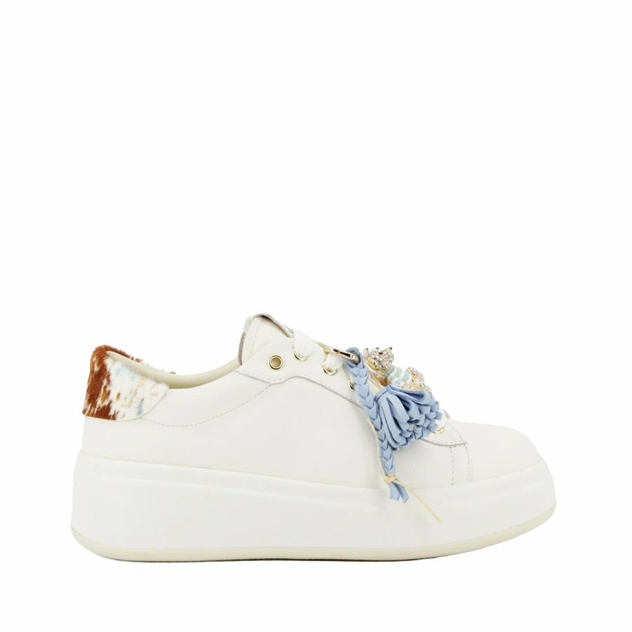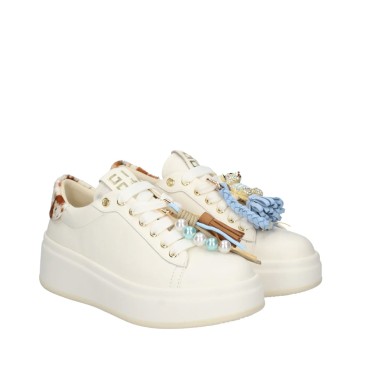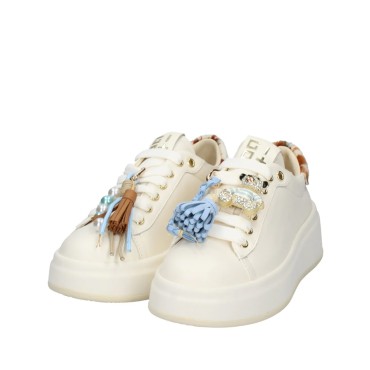 I lacci in tinta bianco latte si armonizzano perfettamente con il design pulito della tomaia, mentre il fondo extra light ricoperto in eco pelle , alto 4,5 cm e in tinta, garantisce leggerezza, slancio e massimo comfort durante tutta la giornata.
