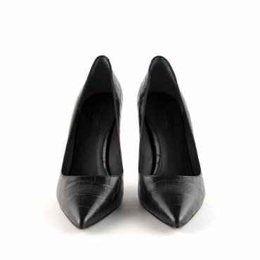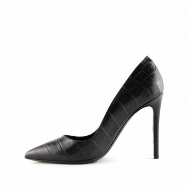 Modello decolte donna in pelle vitello stampa coccodrillo tinta unita su tacco 10 cm. Forma a punta. Tacco a spillo. Fondo cuoio. Must have per ogni donna che vuole essere elegante. Utilizzabile non solo in situazioni eleganti ma, sdrammatizzato, anche sotto pantaloni e jeans per un femminile effetto a contrasto. Fatto a mano. Made in Italy
