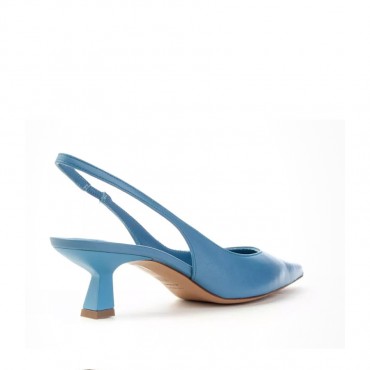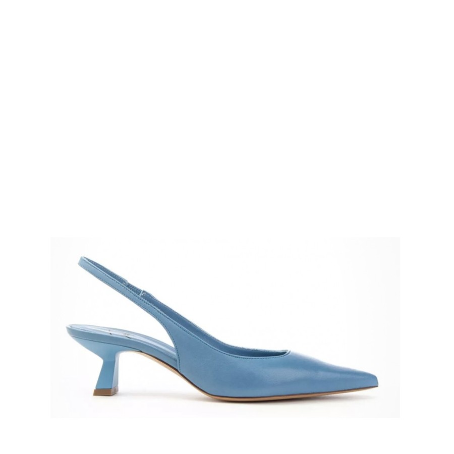 Chanel in pelle di vitello, cinturino posteriore, design a punta, soletta in pelle con logo, suola in pelle e tacco basso scolpito.