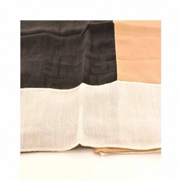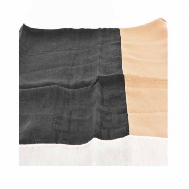 Modello stola donna in tessuto misto cotone lana seta classico Fendi bianco marrone nero. Bordo chiuso cucito a mano con piccolo effetto a contrasto a richiamo del colore centrale in nero del logo Ff Fendi in tinta unita. Fuolard dalla linea classica, elegante e raffinata puo essere indossato sia sotto abiti casual che per abbinamenti piu eleganti