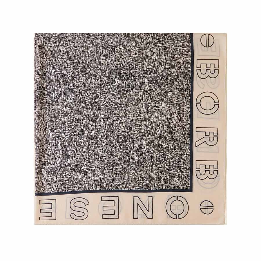 Borbonese maxi foulard OP Logo Outline 1 Chantilly cream Opnaturale misto modal