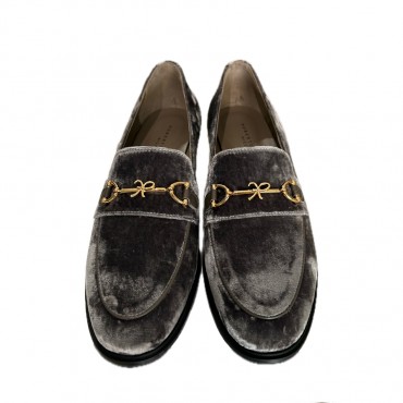 Roberto Festa Mocassino AXEL in velluto grigio con accessorio oro