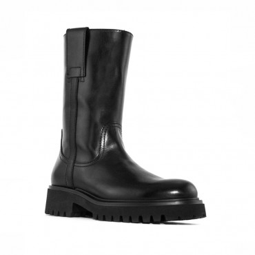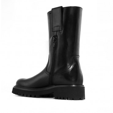 Stivaletto in pelle liscia nera con chiusura zip laterale, punta tonda, cuciture tono su tono, suola in gomma antiscivolo, altezza 3,5 cm