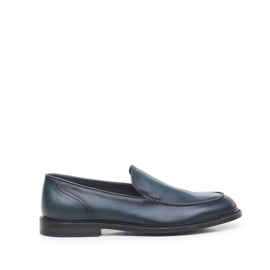 Mocassini in morbida pelle delavè di Pantanetti. Punta arrotondata, design slip-on. In morbido pelle colore orione (blu sfumato) con effetto vintage. Costruzione IDEAL, Fodera in pelle, suola in cuoio con intersuola con antiscivolo. Si prega di notare che queste scarpe in pelle sono rifinite con una speciale tecnica di tintura e / o lavaggio che rende ogni paio diverso dall'altro e quindi esclusivo. Altezza tacco 2 cm