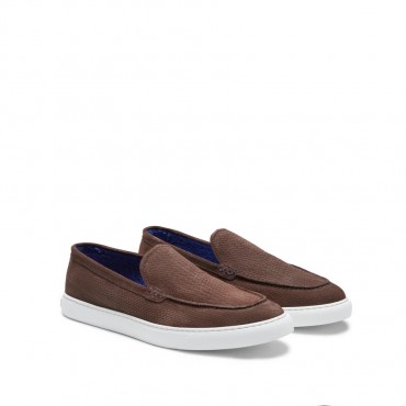 Mocassino della linea Yacht realizzato in morbida pelle scamosciata stampata effetto treccia.