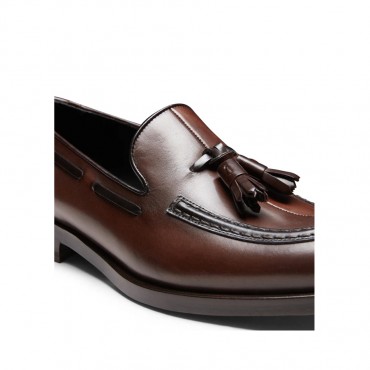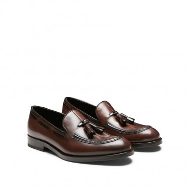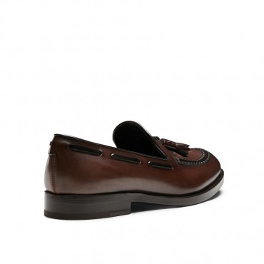 Per la stagione invernale l'iconico mocassino Brera si presenta in chiave giocosa, la tomaia viene spezzata centralmente dando vita ad un raffinato ed inedito contrasto. Il pellame è tinto a mano tramite tamponatura e il sapiente lavoro artigianale crea particolari sfumature cromatiche, rendendo ogni paio unico ed esclusivo. Suola in cuoio con mezzo tacco in gomma.