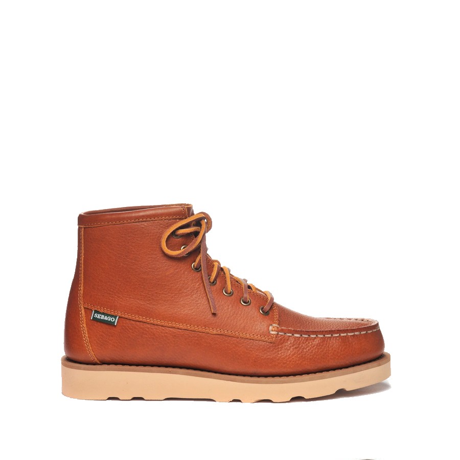 Progettato per vestire uno stile di scarponcino moc toe tradizionale con una ispirazione più contemporanea, questo robusto boot mid da vita all'aperto è stato creato artigianalmente con resistente pelle pull-up martellata, che viene levigata e ben ingrassata per far acquistare alla grana del pellame - durante l’uso della calzatura - una splendida ed unica patina vissuta, più unica e più bella. Cucito a mano replicando con maestria la tecnica di costruzione delle calzature dei nativi americani, presenta tomaia moc toe cucita a mano, fodera in pelle, lacci in cuoio e una leggerissima suola tranciata in EVA con logo Sebago per il massimo del comfort e assorbimento urti. Gli scarponcini moc toe “Tala” sono perfetti da indossare all'aperto e in accampamento: il loro nome in lingua Sioux significa "lupo che insegue”.