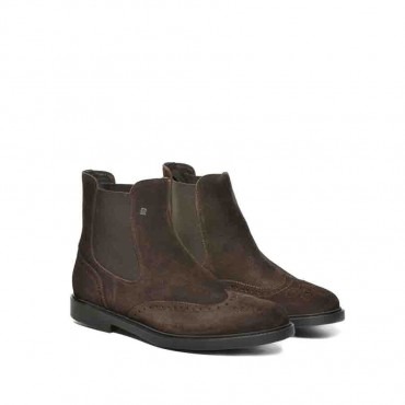 Versatile ed elegante polacchino beatles con bucature, realizzato in pelle scamosciata con trattamento idrorepellente. Gli elastici laterali garantiscono il massimo comfort nella calzata ed una perfetta vestibilità. Suola in gomma con inserti in cuoio e sottile carrarmato.