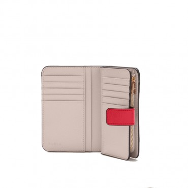 Il portafoglio Furla Camelia si caratterizza per il suo design minimale con apertura a libro. Realizzato in pregiata pelle liscia definita da angoli smussati e linee sinuose, è un accessorio essenziale da custodire in ogni borsa. Il formato compatto è perfettamente studiato per organizzare al meglio banconote, carte e documenti. - Dieci scomparti interni per carte di credito - Scomparto interno per banconote - Quattro tasche interne laterali - Tasca interna portamonete con chiusura a zip - Chiusura a patta con bottone a pressione - Mini logo Furla e Arco punzonati sul davanti
