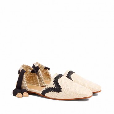 Modello sandalo espadrillas Goya in cotone ricamato a mano su rafia colore naturale. Le calzature Goya attireranno l attenzione di tutti con la solo semplicità. Caratterizzate da punta quadrata chiusa, chiusura con lacci alla caviglia