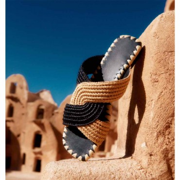 COLORE: NATURALE/NERO COMPOSIZIONE INTERNA: 100% PELLE DI PECORA COMPOSIZIONE ESTERNA: 100% POLIETILENE RAFIA