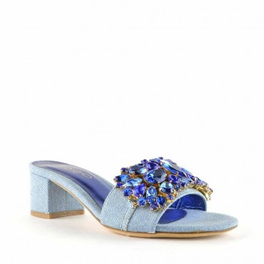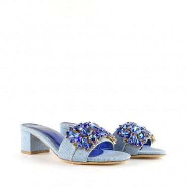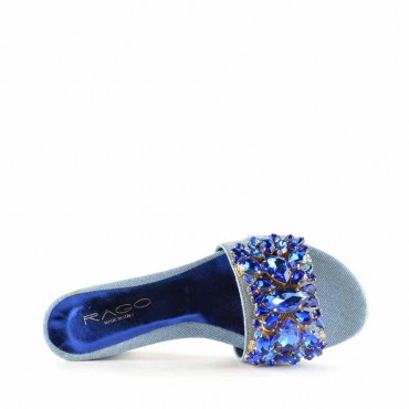 Rago collection sandalo ciabattina denim swarovski
