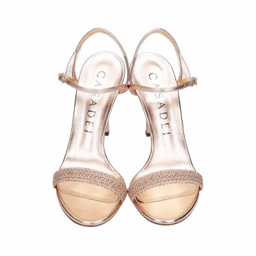 Modello scarpa sandalo da donna in pelle alta qualita su tacco Blade iconico del brand. Sandalo su tacco 10,5 cm trattenuto al piede da cinturino regolabile con fibbia e particolare effetto trasparenza dato dall'inserto di materiale trasparente. In punta fascia in pelle effetto metallizzato colore rame con effetto a micro intreccio e micro borchie. Il sandalo modello di intramontabile eleganza, che slancia e bilancia la figura femminile per mezzo di un tacco 10 cm. Un modello caratterizzato da cinturini tubolari e flessibili, uno dei quali si assicura alla caviglia, che si snodano sul piede e sulla caviglia per una femminilità sinuosa e raffinata.