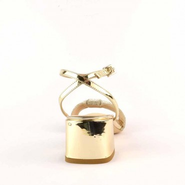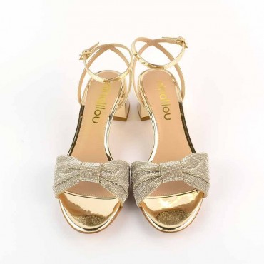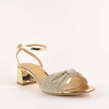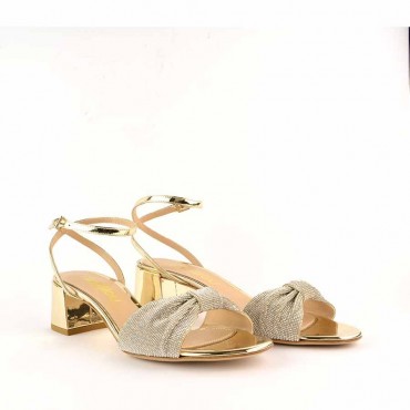 Modello sandalo da donna su tacco basso in pelle vitello effetto specchio colore platino, con fascia effetto fiocco in micro swarovski alla pianta. Allacciato alla caviglia con regolazione mediante fibbia. Questo sandalo arricchito da cristalli darà un tocco glamour a ogni look. Il tacco di 5 cm è perfetto per essere indossato anche con un abito lungo durante una serata importante dato l'effetto luminoso dato dal dettaglio in swarovski.