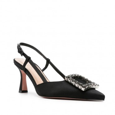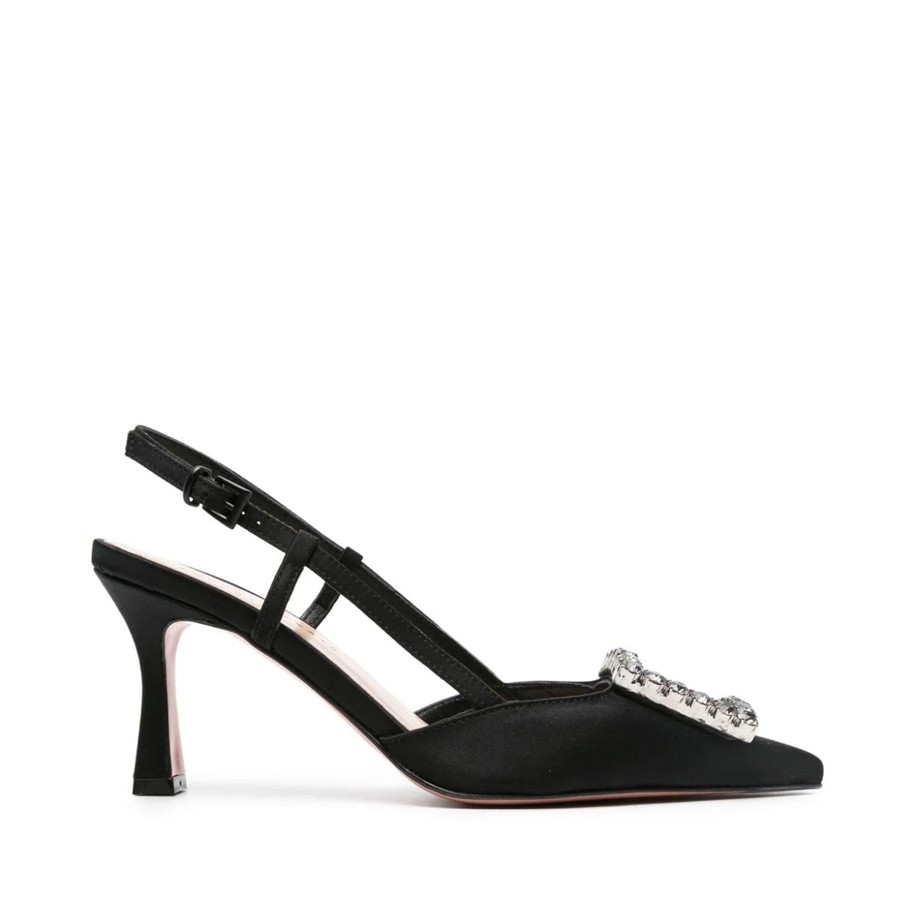 Sandalo Campbell in raso nude con dettaglio gioiello, cinturino regolabile alla caviglia in pelle, suola in cuoio con logo, altezza tacco 7 cm