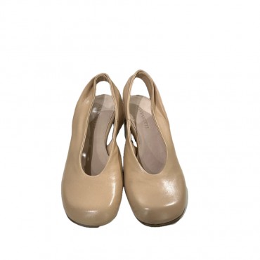 Chanel da donna a punta quadrata in morbida pelle delavè old rose (carne) con cinturino riverse tamponato e cucito a mano.
