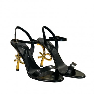 Sandalo donna dal design audace e sofisticato, realizzato in pelle spazzolata nero, con un tacco scultura di 10 cm che forma il logo RF oro. Dotato di un cinturino alto alla caviglia e una fascia in punta, questo sandalo incarna l’eleganza e lo stile distintivo della firma Roberto Festa, un’aggiunta glamour e raffinata per ogni occasione speciale.