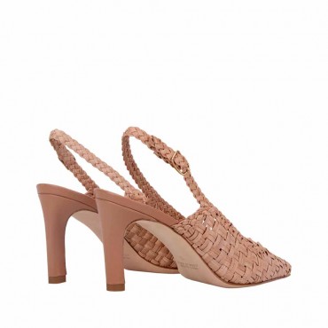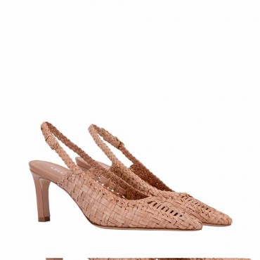 Modello sandalo slingback in pelle intrecciata colore ivory. L’eleganza artigianale incontra la raffinatezza in questa slingback Lella Baldi. Realizzata in pregiata pelle intrecciata, la sua silhouette affusolata e il tacco a colonna di media altezza la rendono perfetta per chi ama uno stile ricercato, ma confortevole. Dettagli Tomaia intrecciata in nappa beige Fodera in pelle Tacco in nappa mocha mousse 75 mm Suola in cuoio