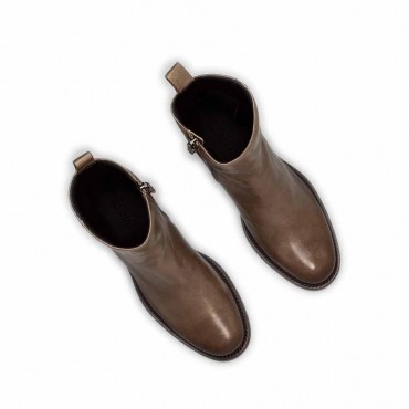Stivaletto con zip laterale fondo in cuoio con antiscivolo in gomma.