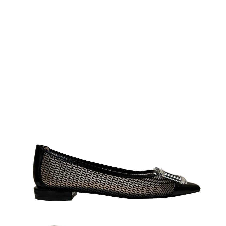 comoda ballerina in rete e pelle verlux nero e accessorio plexy trasparente