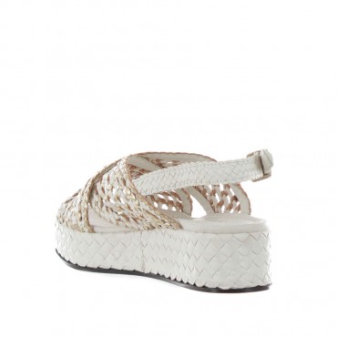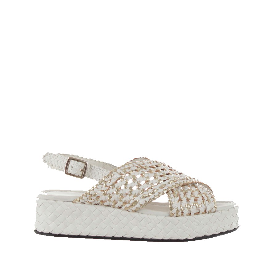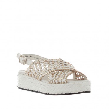 PONS QUINTANA sandalo FORLI' in pelle intrecciata bianco-platino