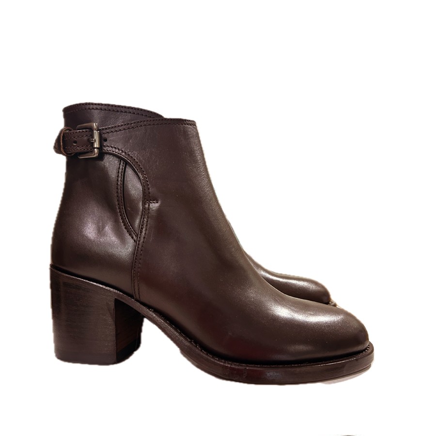 Stivaletto con zip laterale fondo in cuoio con antiscivolo in gomma.