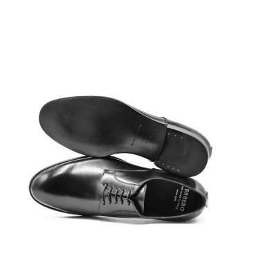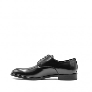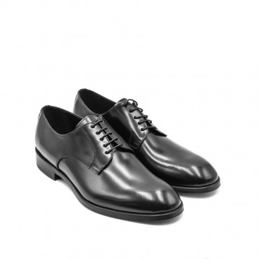 Stringata a cinque fori modello Derby in pelle di vitello spazzolata, con tomaia liscia dalla forma elegante e arrotondata.