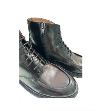 Stivaletto in pelle con lacci e zip. Tomaia interna in pelle. Suola esterna in gomma.