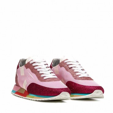 Contemporanea fashion running, il modello Rush Starlight di Ghōud presenta un design minimale caratterizzato da linee geometriche e vivaci. Tomaia in mesh e glitter con dettagli termoadesivi per un look anticonvenzionale. Iconico logo stampato lateralmente.