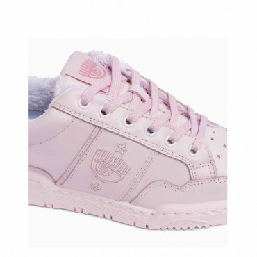 Modello sneakers donna in pelle bianca i. Interno in spugna in tinta pink violet. Banda "Logomania" ai lati iconico del Brand. Suola in gomma.