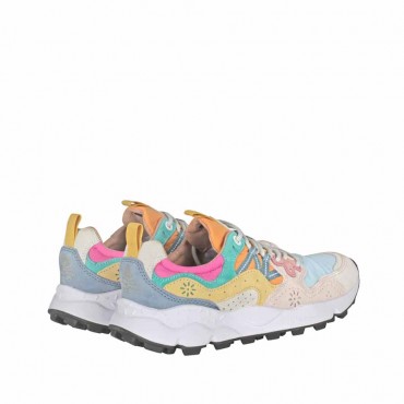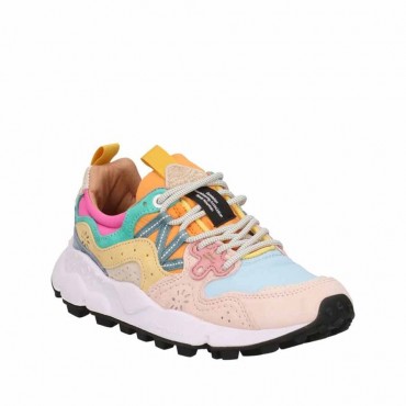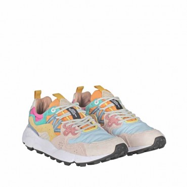 Ispirate al mondo sportivo e outdoor, le sneaker Yamano mixano dettagli active con un'estetica cool, perfetta anche in città. La tomaia in tessuto tecnico presenta dettagli in suede con la caratteristica costruzione overlapping, string trekking e occhiello dalla sagomatura floreale. La suola è in gomma ultra leggera, con spoiler colorato sotto il tallone e battistrada dentellato. La soletta interna in sughero naturale antibatterico assicura benessere al piede e comfort all day long.