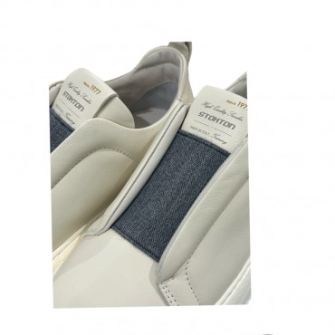 Stokton sneakers donna in pelle panna con alestico grigio