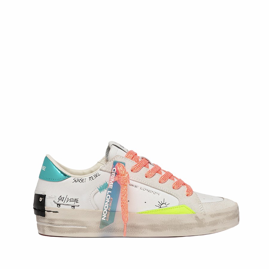 Le Sneakers donna SK8 Deluxe Caribbean Sea di Crime London esprimono energia e personalità con un mix audace di colori e dettagli luminosi, perfette per dare carattere ai look quotidiani.