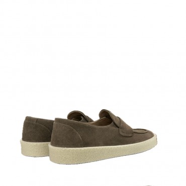 Scarpa modello slip-on intorbido camoscio colore tortora realizzato in effetto delavè.