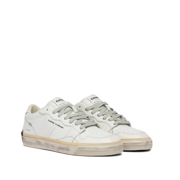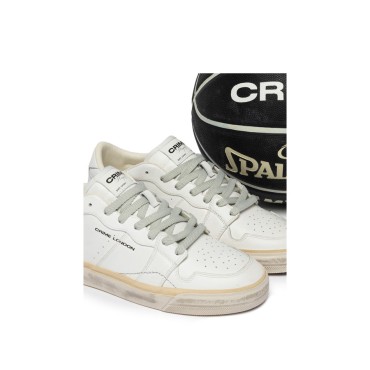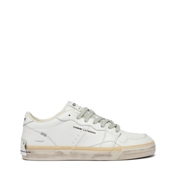 Sneaker realizzata con materiali di alta qualità Made in Italy Tomaia in pelle White, dettagli in pelle bianca Talloncino in pelle bianco con logo CRIME Linguetta in pelle bianco con label logata in tessuto Lacci bianco in cotone. Fodera in pelle e tessuto Suola in gomma beige, fondo bianco, alta 2.5 - 3 cm Effetto vintage